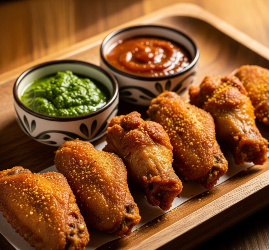 Crispy fried chicken wings coated in spicy-tangy masala with an Indian twist. Ideal for game nights or party starters.